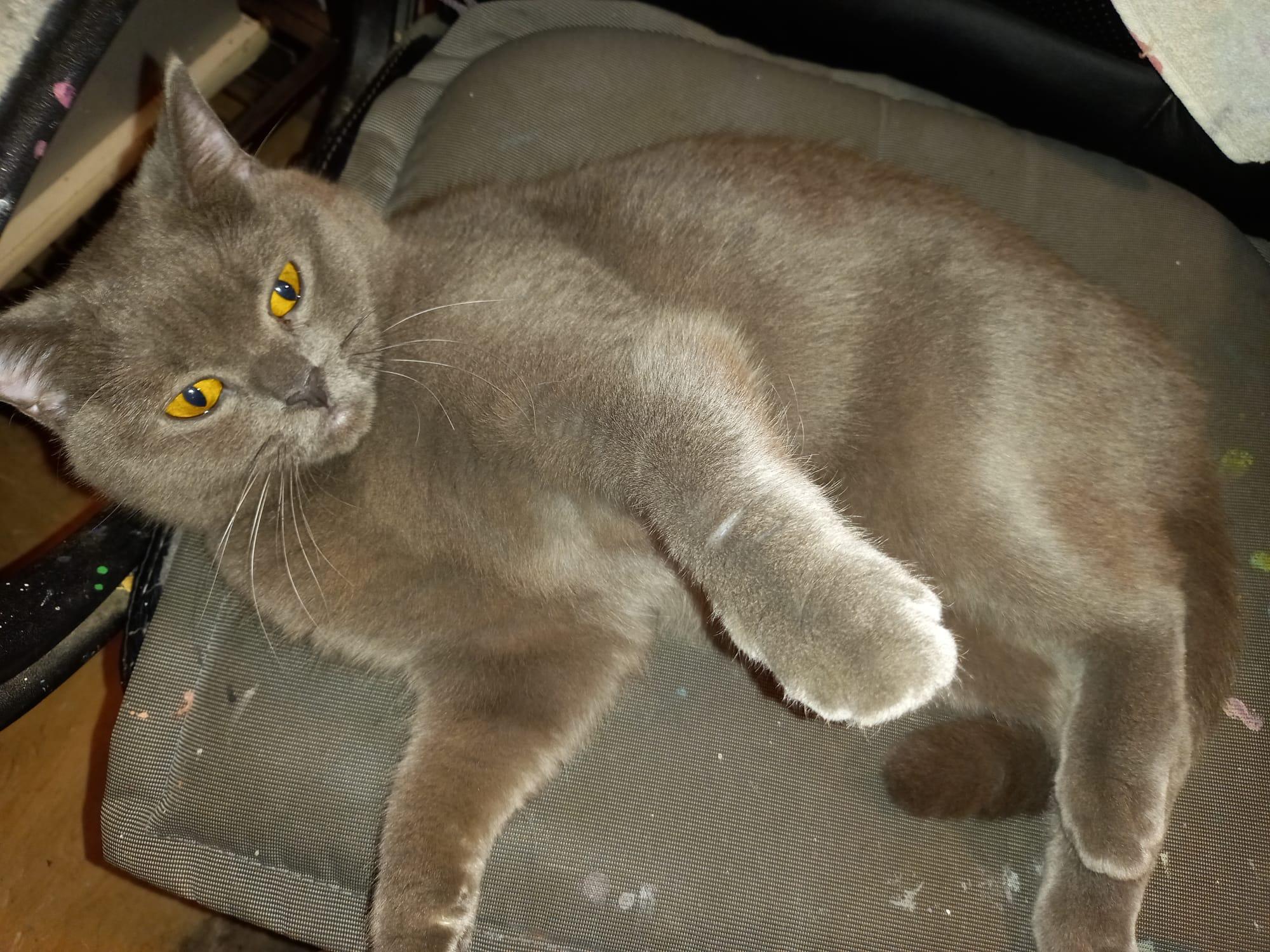 Soweit ich weiß, ist sie im März 2023 geboren. Geimpft wurde sie 2023 & 2024. Kitty ist eine reinrassige British Kurzhaar, Papiere habe ich jedoch KEINE, da der Nachlassverwalter sich diesbezüglich nicht wirklich Mühe gegeben hat um sie zu finden.