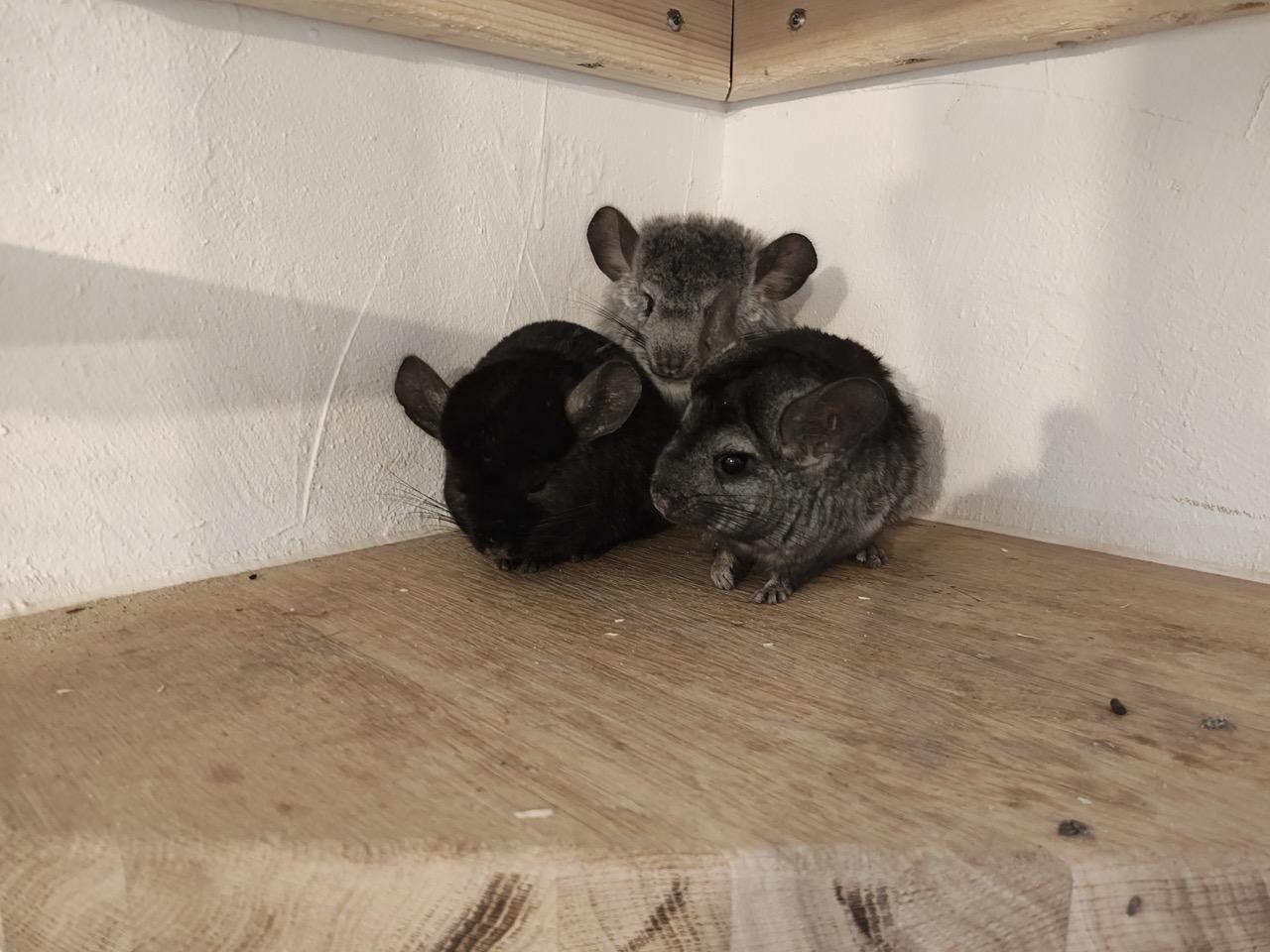 Die beiden leben aktuell in einem großen, selbstgebauten Eckkäfig, der perfekt in eine Raumecke passt.