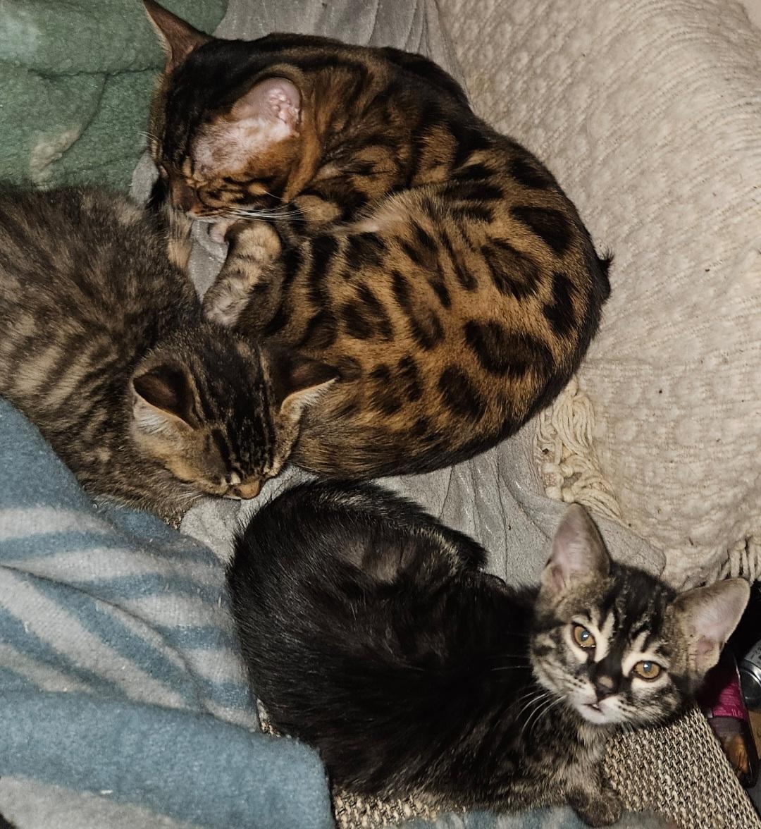 Candy (rein blau gezogene Bkh) und Toffee (reiner Bengale) haben sieben bezaubernde Kitten hervorgebracht.