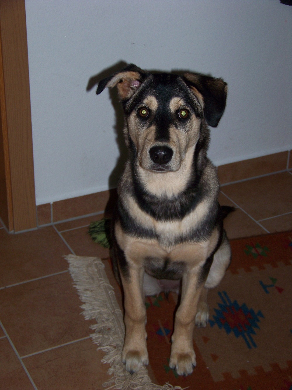 Sie ist total kinderlieb (drei Kinder), schmust gern, natürlich noch verspielt und erforscht alles. Allerdings kann sie schon sehr gut Haus und Hof bewachen.