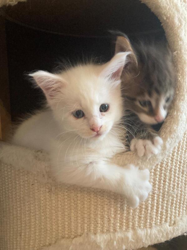 Der kleine weiße Mann und sein Braun tabby weiß Bruder sind am 19.02.2023 geboren und dürften Anfang Juni ausziehen.