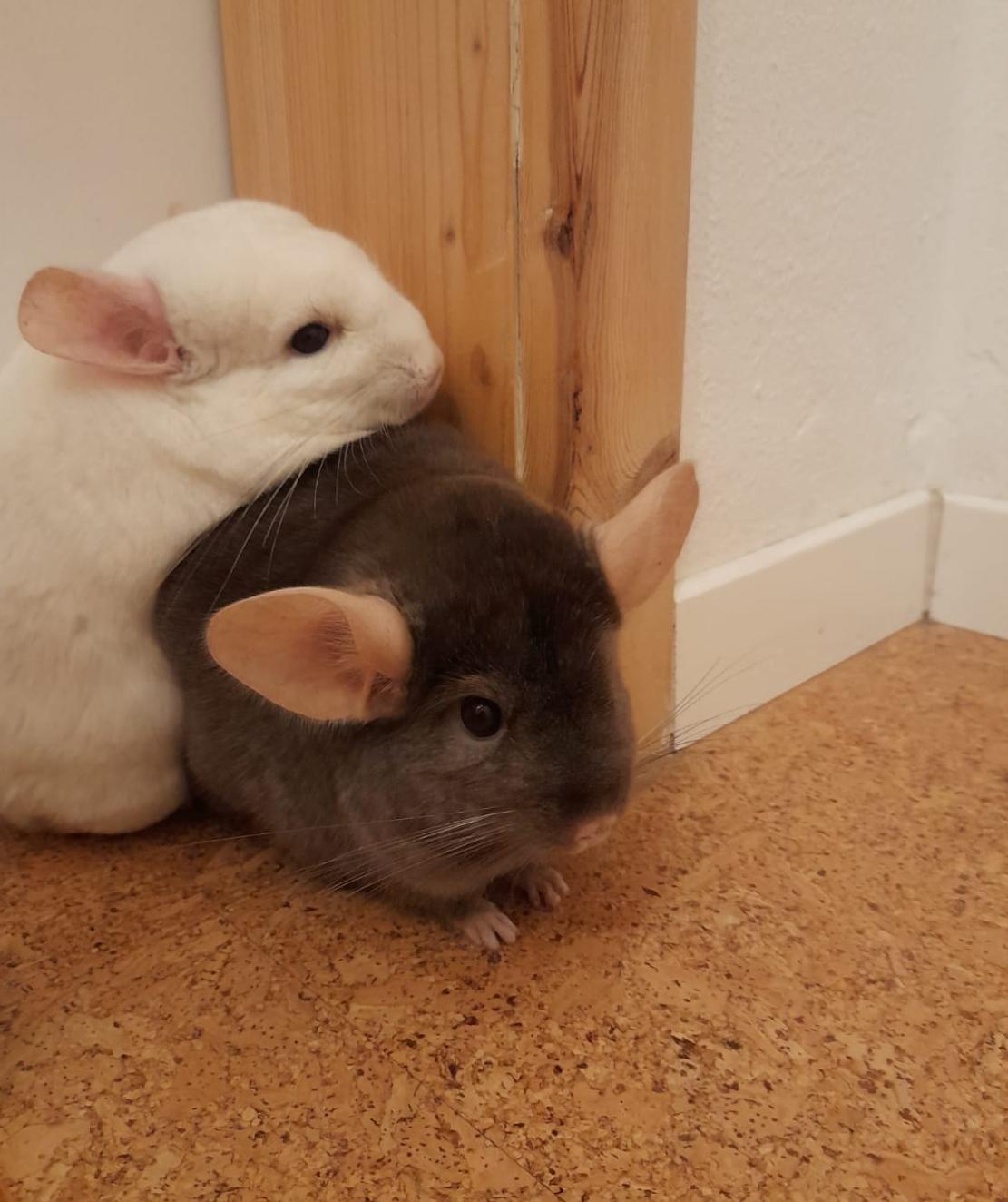 Aufgrund einer Familiensituation müssen wir schweren Herzens unsere drei süßen Chinchillas abgeben (DRINGEND!!!). Da wir sie selbst von einer Privatperson gekauft haben, wissen wir ihr Alter nicht genau, aber sie dürften alle drei nicht älter als vier Jahre alt sein. Alle sind gesund und fitt. Die zwei Grauen sind handzahm, der weiße eher scheuer.