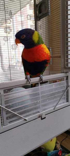 Loripapagei mit Käfig abzugeben. Sehr lieber Vogel.mit allem Zubehör.